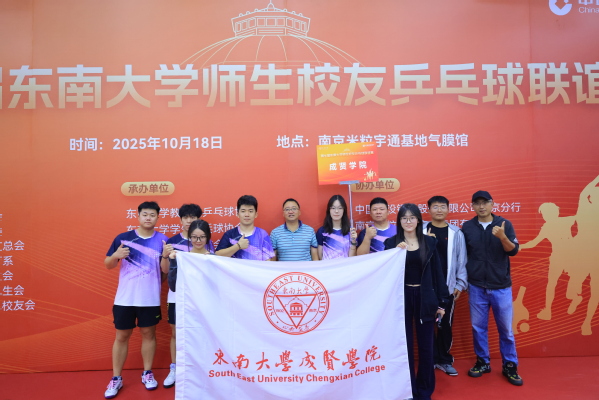 10月18日,第七届东南大学师生校友乒乓球联谊赛在东南大学体育馆圆满落幕。成贤学院代表队在体育教研室主任王青禾的带队下实力出征,由校工会文体委朱龙舜任领队,校友及师生代表周远昭、陈文正、鞠益珉、徐艺菲、郭泽宇组成的五人团队,在36支参赛队伍的激烈角逐中,凭借精湛的球技、默契的配合与顽强的拼搏精神,一路过关斩将,最终荣获团体第三名的优异成绩。