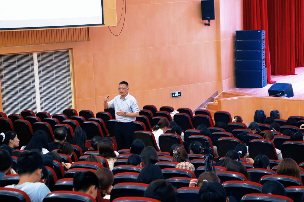 高凯丽副院长在致辞中聚焦AI时代背景,结合经管学科优势,强调“专业是立身之本,需扎实扎根”,同时鼓励新生遇到困惑可随时与老师沟通,既明确专业学习方向,也让新生感受到学院的关怀支持。