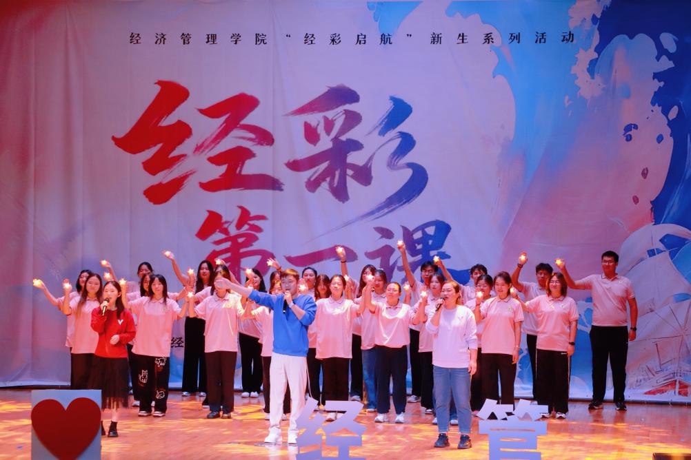 这场“经彩第一课”,是理论与青春表达层层递进的启蒙。作为经济管理学院“经彩启航”2025级新生系列活动的开篇,“经彩第一课”旨在为新生搭建起认知大学的开篇,后续十个版块的系列活动将在此基础上,从专业实践、心理健康、职业规划、升学留学、就业创业等维度持续发力,助力2025级新生在经管学院这片沃土上,以“经”为舟、以“彩”为帆,在大学四年里织就属于自己的“经彩”华章。