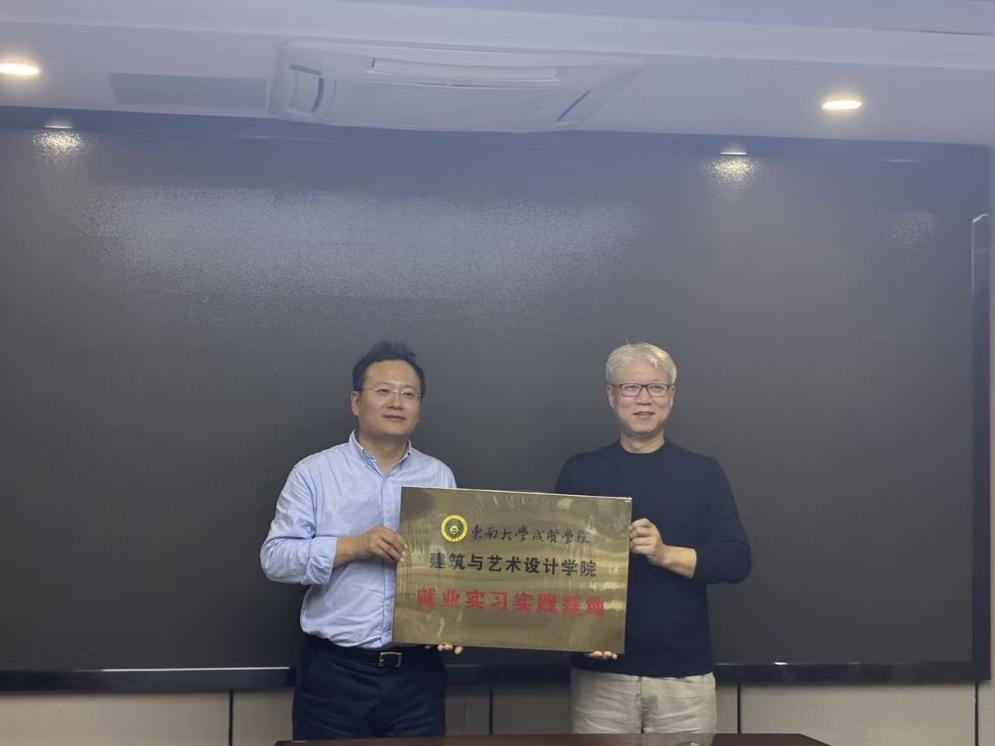 在江苏甲第景观设计工程有限公司,学院一行在设计总监洪敏的陪同下,参观了项目展示中心与设计工作室,详细了解企业在景观规划、生态修复、文旅项目打造等领域的核心业务与行业优势。座谈会上,双方围绕行业发展趋势与人才需求展开深度研讨,在人才培养、资源优化等方面达成多项共识,签订了校企合作协议书并挂牌“建筑与艺术设计学院就业实习实践基地”。2025届风景园林专业毕业生卢楚霖分享了业务经历和感悟,表示非常愿意为校企双方更深入地交流合作做好桥梁。未来,双方将在共建实习实训基地、引入企业导师联合授课、合作开展横向课题攻关等方面推进深度合作,打造“理论教学+项目实战”的双轨培养模式,助力学生精准对接行业岗位需求。