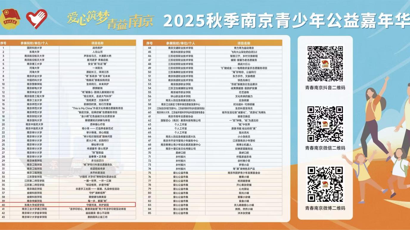11月9日,“爱心筑梦·青益南京”2025秋季南京青少年公益嘉年华于紫金山科技城人才专列广场圆满举行。本次活动由共青团江苏省委、江苏省青年志愿者协会指导,共青团南京市委、南京市委社会工作部及南京市青年志愿者协会共同主办。活动以弘扬“奉献、友爱、互助、进步”的志愿精神为宗旨,致力于推动青年志愿服务项目化、常态化发展。现场共汇聚东南大学、南京师范大学等高校及社会组织的85个优质志愿服务项目。