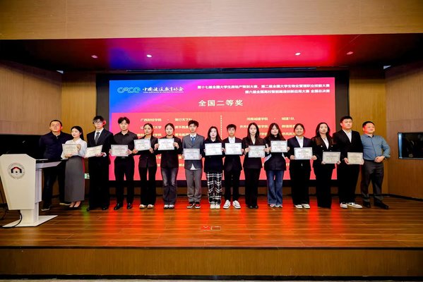第十七届全国大学生房地产策划大赛暨第二届全国大学生物业管理职业技能大赛以数字化、网络化、智能化赋能房地产行业发展为核心,搭建校企人才培养桥梁,设置房地产开发项目策划、城市更新项目策划等多个参赛方向,吸引了东南大学、哈尔滨工业大学、四川大学等全国众多高校同台竞技。经初赛选拔与总决赛现场展示答辩,我校两支队伍表现突出:徐豪杰、邢雨欣、卢佺盛、彭年、金依涵团队在杨会东老师、盛娟老师指导下荣获全国三等奖;李雨轩、徐超意、尉迪飞、马船乐团队在刁璇老师、倪小磊老师指导下,同样斩获全国三等奖。