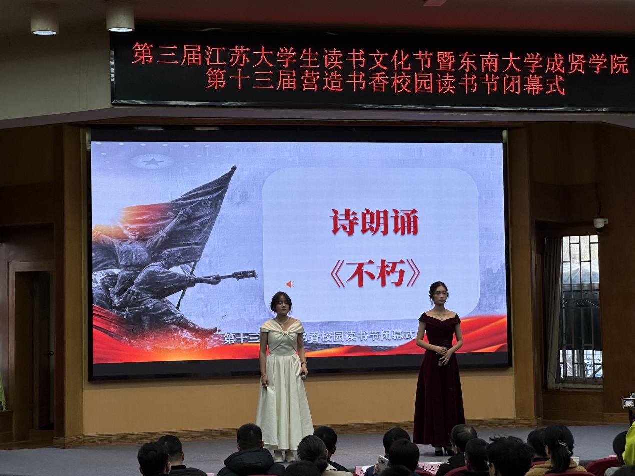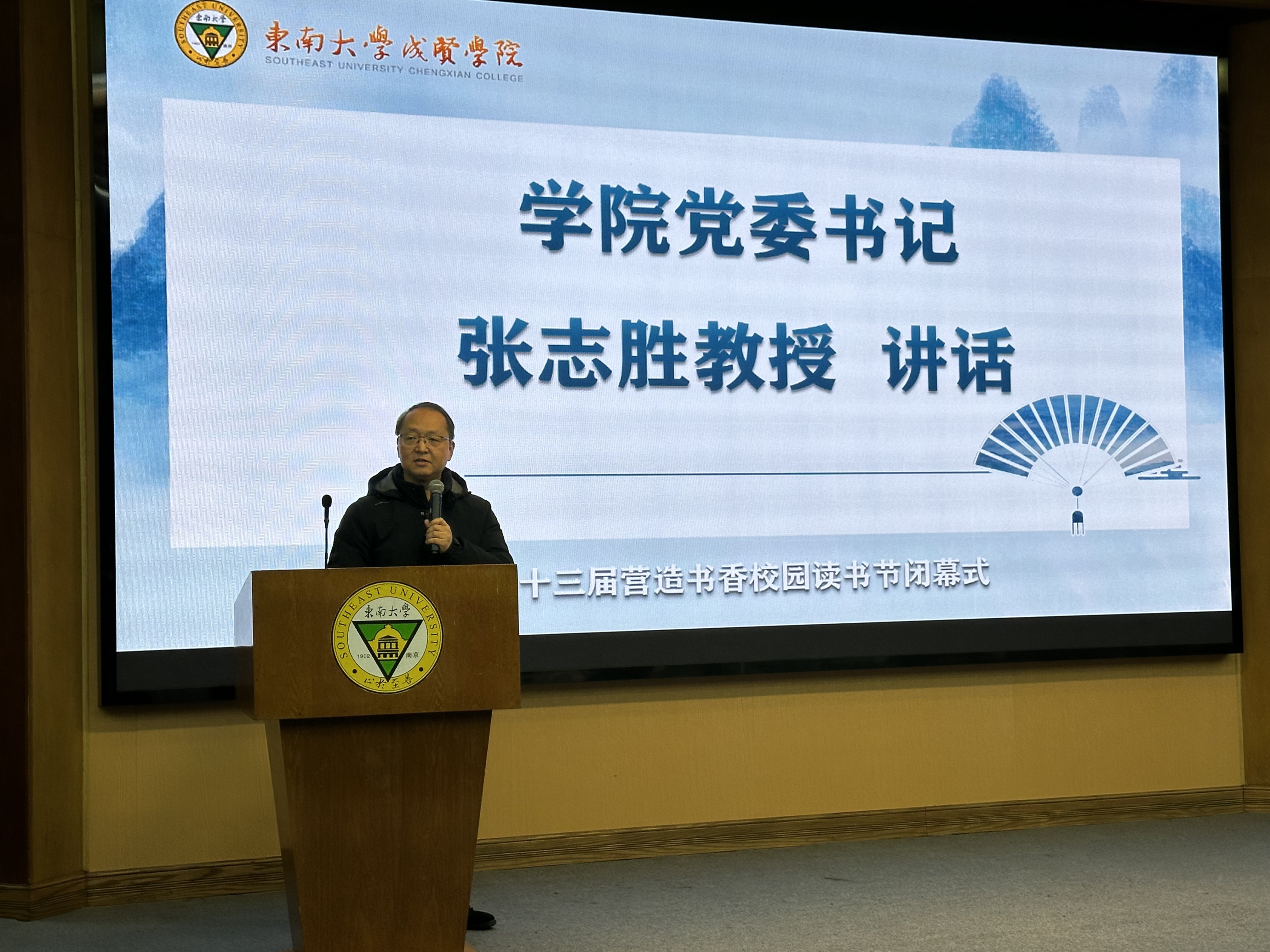 12月9日,第三届江苏大学生读书文化节暨东南大学成贤学院第十三届营造书香校园读书节闭幕式活动在真知馆报告厅圆满结束。东南大学成贤学院党委书记张志胜,校工会主席、图档信息中心主任沈冬生,学生处处长施杰,各二级学院领导及获奖师生代表出席活动,200余名师生参加闭幕式。