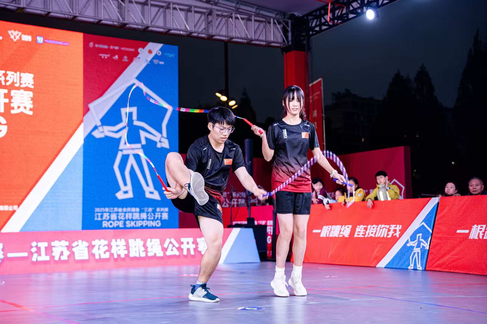 本次赛事高手云集,吸引了苏州、徐州、南通、盐城、宿迁等全省多地队伍齐聚,教练、领队及运动员共计586人同台竞技,在自然与商圈交融的独特赛场,书写了全民健身与多元融合的精彩篇章。九大竞赛项目展开激烈角逐,上演了许多场精彩绝伦的绳上对决。