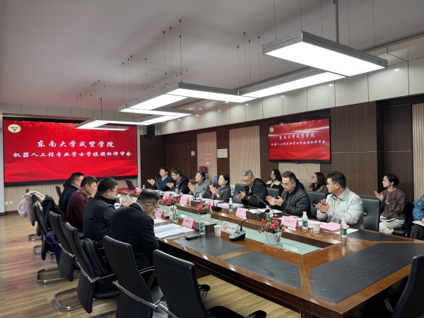 人工智能专业评审专家组由东南大学沈军教授、姚莉教授,南京航空航天大学魏明强教授、常相茂教授,南京工程学院黄家才教授组成,沈军教授任组长;东南大学马旭东教授、王庆领教授,南京邮电大学徐丰羽教授,南京林业大学胡春华教授,南京工程学院黄家才教授组成机器人工程专业评审专家组,徐丰羽教授任组长。东南大学成贤学院副院长戴玉蓉,教务处处长金辉、副处长黄诚,电子与计算机工程学院执行院长王晓蔚、党总支副书记苏力、副院长朱林、综合办主任冯杭州及相关专任教师、学生代表参加会议。会议由教务处处长金辉主持。
