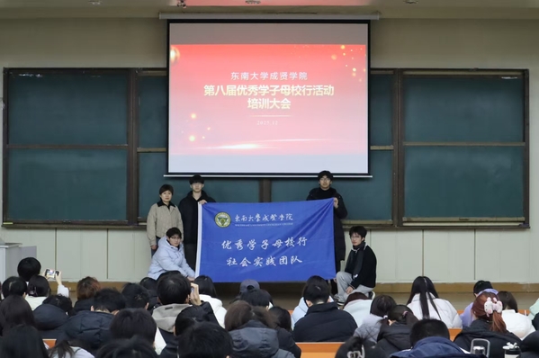 为进一步提升学校社会影响力与招生宣传实效,搭建高校与中学协同育人桥梁,12月24日中午,东南大学成贤学院第八届 “优秀学子母校行”社会实践活动培训会在华罗庚馆101教室举行。学生处副处长沈黎芳、招生办公室徐姝及 150余名学生志愿者参加了活动。