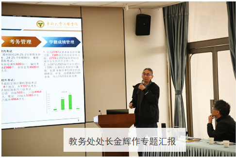 党委学工部部长、学生处处长施杰,组织人事部部长汪旭东,教务处处长金辉先后介绍了2025年学校招生、人事、教学、思政等各方面工作的具体开展情况。各部门将学校事业的快速发展作为一项系统性工程,在工作分工的同时,打破边界壁垒,整体协同、紧密合作,围绕高水平应用型人才培养目标,扎实开展各项工作。凝练学科优势、提升办学层次、优化教学条件、推动产教融合,并有效加强师资队伍建设,为教职工干事创业提供切实的制度支撑和服务保障。