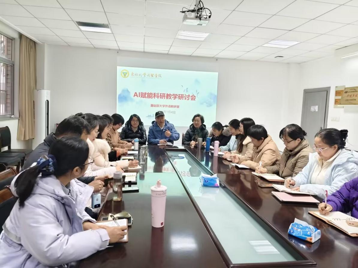 为深入推进学术研究与教育教学创新,赋能教师专业发展,我校基础部外语教研室于2026年1月4日成功举办了“AI赋能科研教学研讨会”专题研讨会。本次研讨会内容涵盖高水平论文发表、人工智能工具教学应用及国家级翻译项目实践,外语教研室教师积极参与。