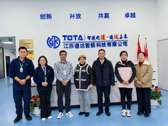 在江苏道达智能科技有限公司,董事长孙俊杰详细介绍了公司在智能装备研发、工业自动化解决方案等核心业务领域的技术优势与市场布局,重点展示了其在精密制造、智能控制系统等方面的创新成果及多行业应用案例。学院一行实地参观了企业生产车间,深入了解生产流程、技术标准及人才需求导向,为学院相关专业课程优化与实践教学改革提供了鲜活参考。