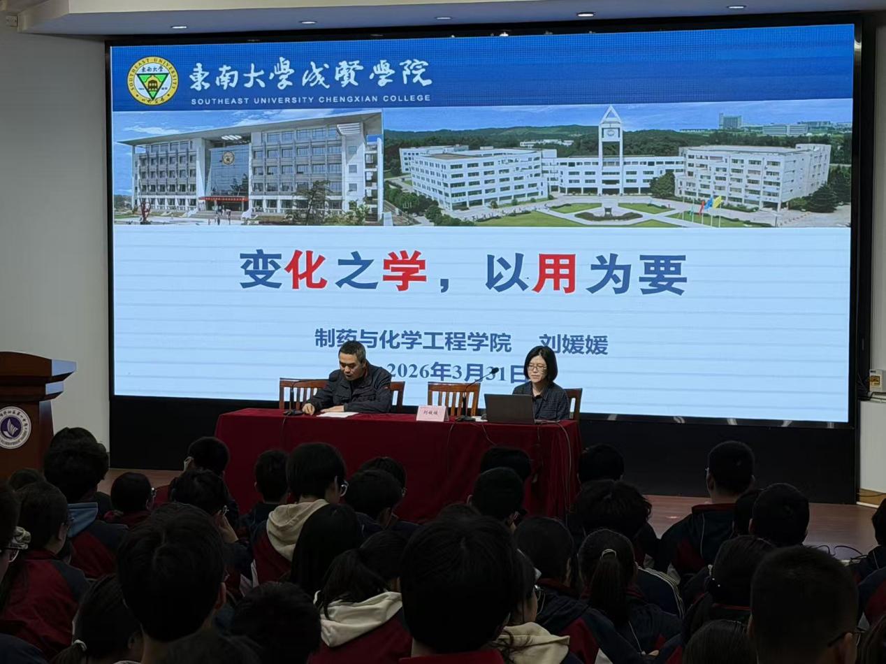 随后,制药与化学工程学院副院长刘媛媛教授为邗江区第一中学的师生们带来了题为《变化之学,以用为要》的精彩学科讲座。刘院长用深入浅出的语言,简要梳理化学学科的发展背景与历史演进脉络,带领同学们清晰感知学科的发展轨迹;着重展现化学的实用魅力与应用价值,从日常衣食住行等生活场景,到医药研发、新材料研制、建筑材料应用等前沿领域,全方位阐释化学学科对人类社会进步、生活品质提升的深远影响,让同学们真切感受学科的独特魅力。讲座现场互动氛围热烈,林保平院长与刘媛媛副院长耐心解答同学们提出的学科学习、专业选择、未来发展方向等问题,悉心为学子答疑,有效激发了同学们对化学学科的学习热情与报考我校的意愿。