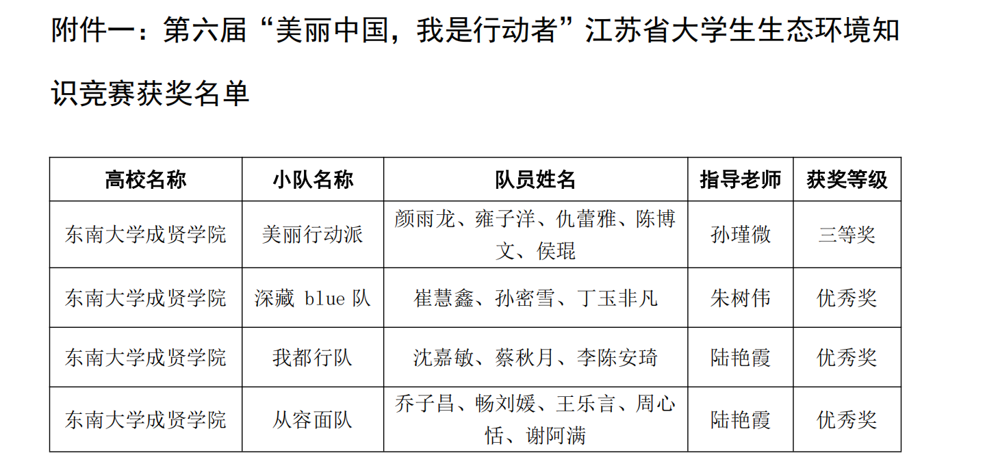 校团委始终坚持以赛促学、以赛促行,常态化组织环保科普、知识竞赛、实践调研等特色活动,引导青年学子把生态理念内化于心、外化于行。此次竞赛佳绩,是学校坚持立德树人、推进素质教育的生动实践。未来,学校将持续深化生态文明教育体系建设,不断丰富育人载体,引领广大青年学子坚定践行绿色发展理念,主动担当生态环保使命,以实际行动守护绿水青山,为建设美丽中国、推动江苏生态环境高质量发展贡献成贤青年的智慧与力量。