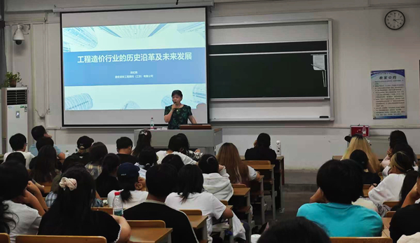 为帮助工程造价专业学生深入了解行业发展趋势、明晰职业成长路径,9月29日,土木与交通工程学院特邀江苏省工程造价管理协会秘书长、捷宏润安工程顾问(江苏)有限公司创始董事吴虹鸥女士与学院工程造价专业负责人李德智教授共同开展专业介绍和专题讲座。本次讲座以“工程造价行业的沿革、转型与人才发展”为核心主题,深度聚焦行业数字化改革浪潮下的复合型人才培养路径,为在场师生奉献了一场兼具理论高度与实践深度的思想盛宴,带来了最前沿的行业洞察与启示。