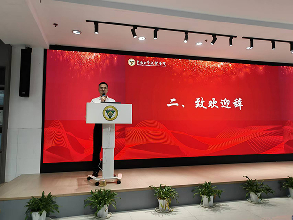 仪式伊始,电计学院党总支副书记苏力代表电子与计算机工程学院欢迎致辞,对南京信息工程大学计算机学院、网络空间安全学院此次授牌表示欢迎和感谢。他指出,我校始终秉承东南大学百年办学优良传统,紧密依托东南大学雄厚的学科资源和优质的教学资源,培养的毕业生广受社会好评。与南京信息工程大学计算机学院、网络空间安全学院缔结研究生生源基地合作关系,是对电计学院办学质量与育人成果的肯定,不仅是两校深化学科对接、完善协同育人体系的举措,更能为学生搭建起从本科学习到研究生深造的“直通车”。