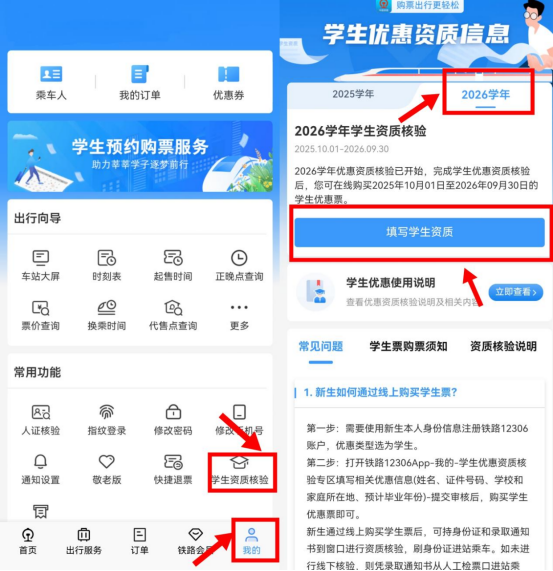 1.资质核验以学年为单位,每年10月1日至次年9月30日为一个优惠年度,请在每学年首次购票前完成资质核验。