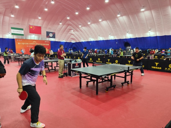 本次赛事汇聚了东南大学各校区、各院系的师生代表及众多校友组成的队伍同台竞技,赛场氛围热烈非凡。赛场上成贤学院的五名选手精神抖擞、斗志昂扬,凌厉的扣杀、巧妙的搓球、精准的削球与灵活的步法交替上演,充分展现出扎实的基本功和良好的竞技状态。在多场关键对决中,队员们顶住压力、沉着应对,攻防转换间尽显战术智慧,每一个精彩回合都赢得现场观众的阵阵喝彩。从小组循环赛到淘汰赛,团队成员们相互鼓励、协同作战,完美诠释了团结协作、奋勇争先的精神风貌。