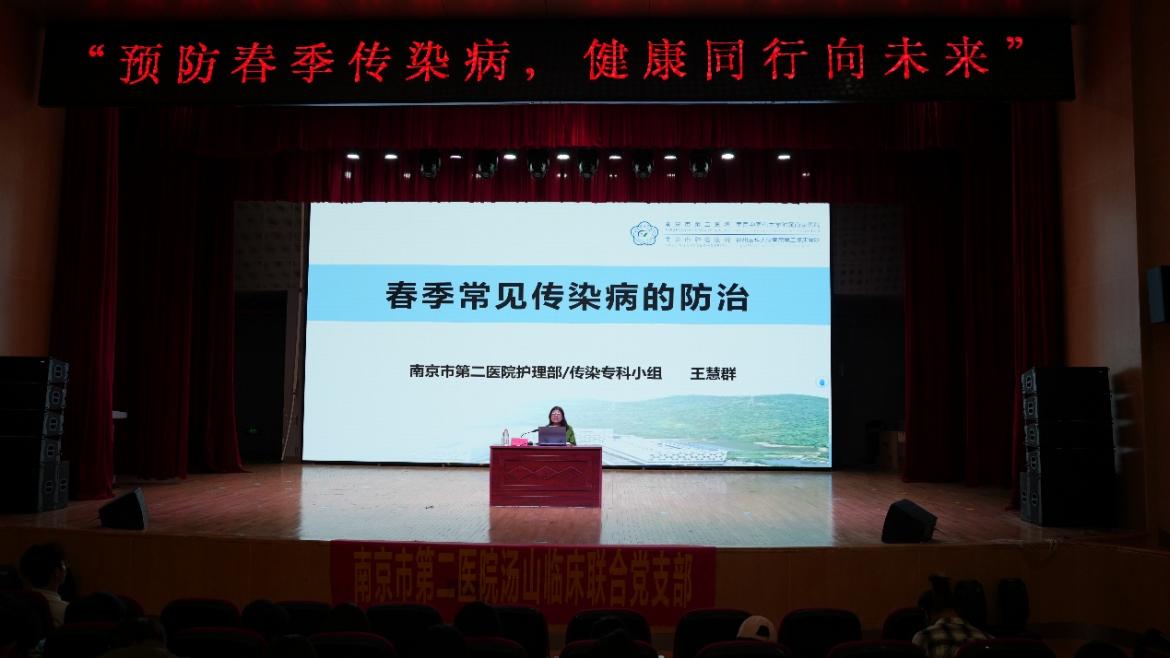 春季是呼吸道、肠道传染病高发期,为筑牢校园健康安全防线,保障师生身体健康与校园稳定,4月8日晚,校团委特邀南京市第二医院汤山院区感染科科护士长王慧群,在大学生活动中心313报告厅开展“预防春季传染病,健康同行向未来”主题讲座。全校530余名师生聆听讲座。